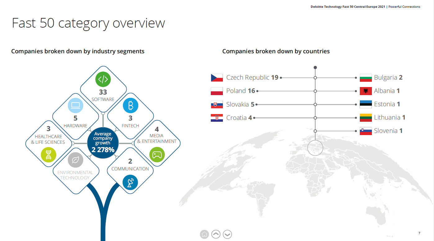 The Deloitte Technology Fast 50 in Central Europe is a programme that recognises and profiles fast growing technology companies in the region. The programme, which is now in its 22nd year, ranks the 50 fastest growing public or private technology companies.